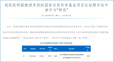 张研主持的自然科学基金结题获评特优