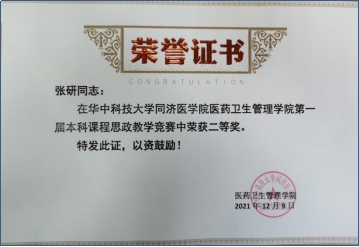 在教学改革方面,张研老师锐意革新,参与了全国MOOC《卫生经济学》的制作、开发线上仿真实验课程,累计获批三项williamhill中文教学研究项目。他带领MPA同学开展的“抗疫非常路、党建破困局”案例研究,获得2023年全国公共卫生与健康管理案例三等奖、首届湖北省公共管理案例大赛二等奖。