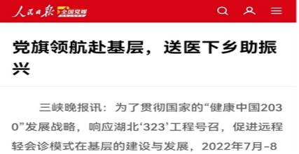 远程轻会诊活动获得了《人民日报》2022.8.23日报道