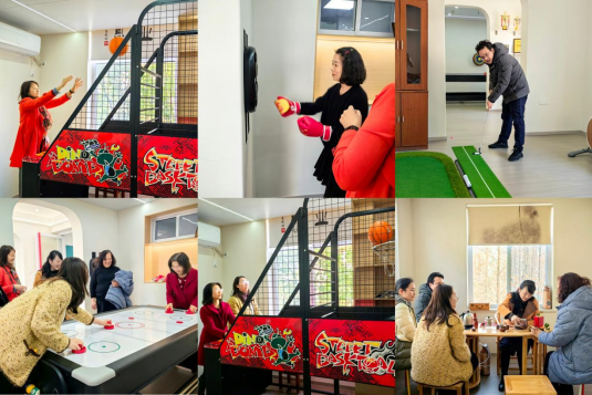 启用仪式过后,教职工们纷纷体验各种健身娱乐设备。在篮球机前,大家竞相投篮,欢笑声此起彼伏;桌面冰球区,教职工们两两对战,享受着智慧与技巧的较量;而在椭圆机和音乐拳击机前,大家则通过运动释放压力,感受身心的愉悦;高尔夫球区,大家纷纷尝试挥杆,体验高尔夫球的优雅与乐趣;茶桌旁,大家围坐一起,品茶交流。