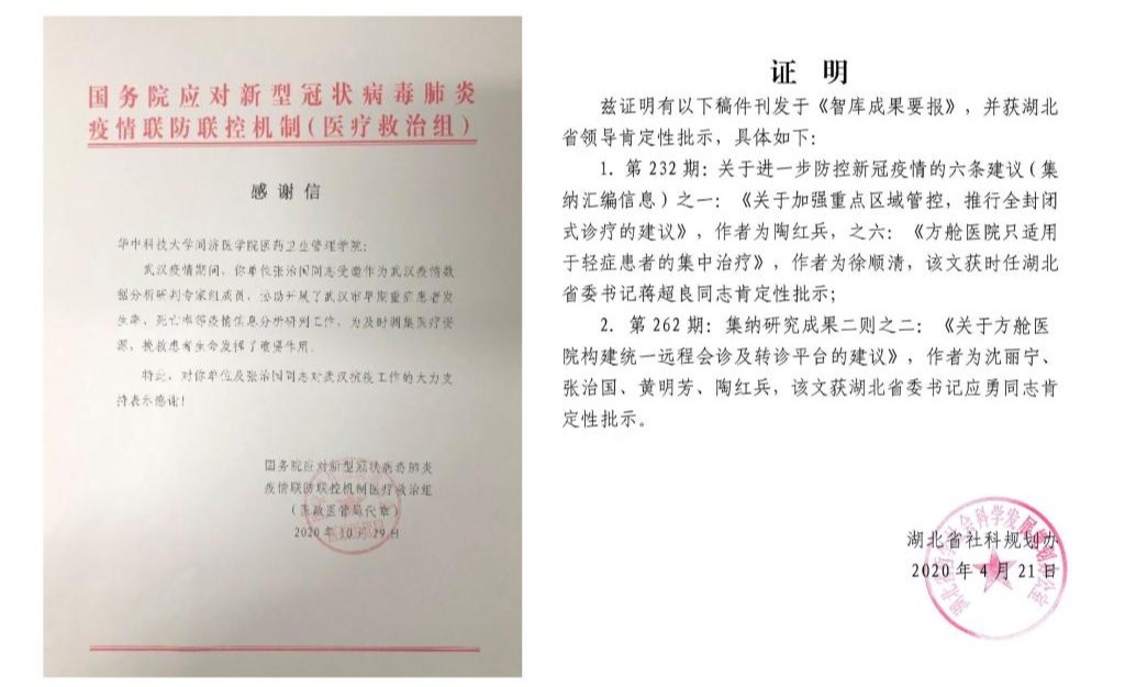 在社会影响方面,中心成员先后在湖北省科技管理培训班暨医学伦理与卫生技术评估工作研讨会、海南省药学会成立六十周年暨2017年学术年会、武汉市疾病预防控制中心业务学习会、武汉市精神卫生中心科研培训班、williamhill中文同济医学院附属协和医院科研论坛、第十届亚太地区循证医学研讨会暨第三届循证中医药学国际论坛和首届世界人工智能健康管理论坛、湖北省医学会医学工程分会和湖南省医学会医学工程学专业委员会共同主办的“第一期两湖医学工程管理沙龙”、2019年武汉医学会医疗器械分会(1+8)城市圈学术年会、湖北省卫生统计与信息学会病案统计专委会主办的“医院病案统计与DRGs应用”、武汉市医疗保险研究会主办的“新机构新形势下科学高效使用医保基金研讨会”、河南省医院协会经济管理分会医院经济管理科研专题论坛暨第二届“威高杯”读书演讲比赛、《中国医疗设备》杂志社召开的“医工陪伴,疫后同行”线上学术会议、深圳市卫生技术评估创新发展研讨会、2020湖北省医疗器械管理质量控制中心培训班、《中国医院建筑与装备》杂志社和湖北省医学会医学工程学主办的“医工赋能-湖北省医用耗材管理研讨会(第二期)”、《中国医药报》召开的“医保政策下合理用药研讨会”线上学术会议等一系列学术会议和论坛上就卫生技术评估相关内容进行讲座和发言。针对2020年突发的新型冠状病毒肺炎疫情,中心也积极参与到抗疫活动中。2020年2月8日,中心成员张治国受设置在武汉会议中心的“国务院应对新型冠状病毒肺炎疫情联防联控机制(医疗救治组)”邀请,成为武汉疫情数据分析研判专家组成员,协助开展武汉市早期重症患者发病率、死亡率等疫情信息分析研判工作,为及时调集医疗资源,挽救患者生命发挥了重要作用。此外,2020年4月21日,中心成员沈丽宁、张治国及WilliamHill威廉希尔书记黄明芳、副院长陶红兵撰写的“关于方舱医院构建统一远程会诊及转诊平台的建议”报送湖北省委宣传部,获湖北省委书记应勇同志肯定性批示。
