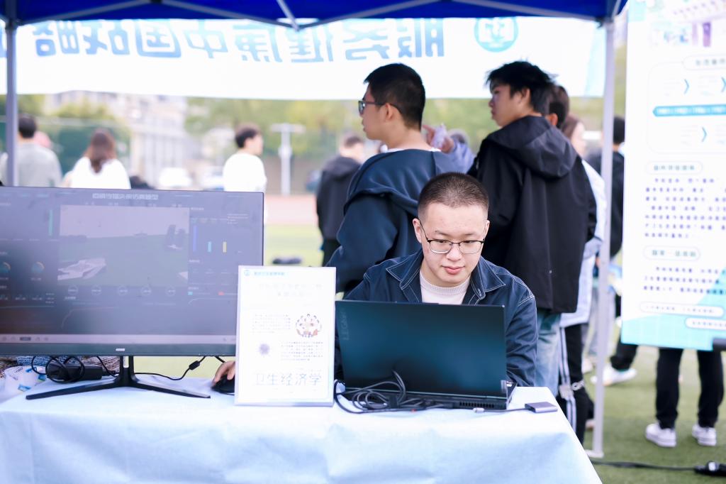 专业展示区,我院展有由我院师生共同开发的传染病传播救治决策仿真模型,该系统可以根据居民行为轨迹、病毒传播逻辑设定,实时评估各级防控政策的健康损失与经济成本,直观形象展现了卫生经济学的理论概念与应用场景。