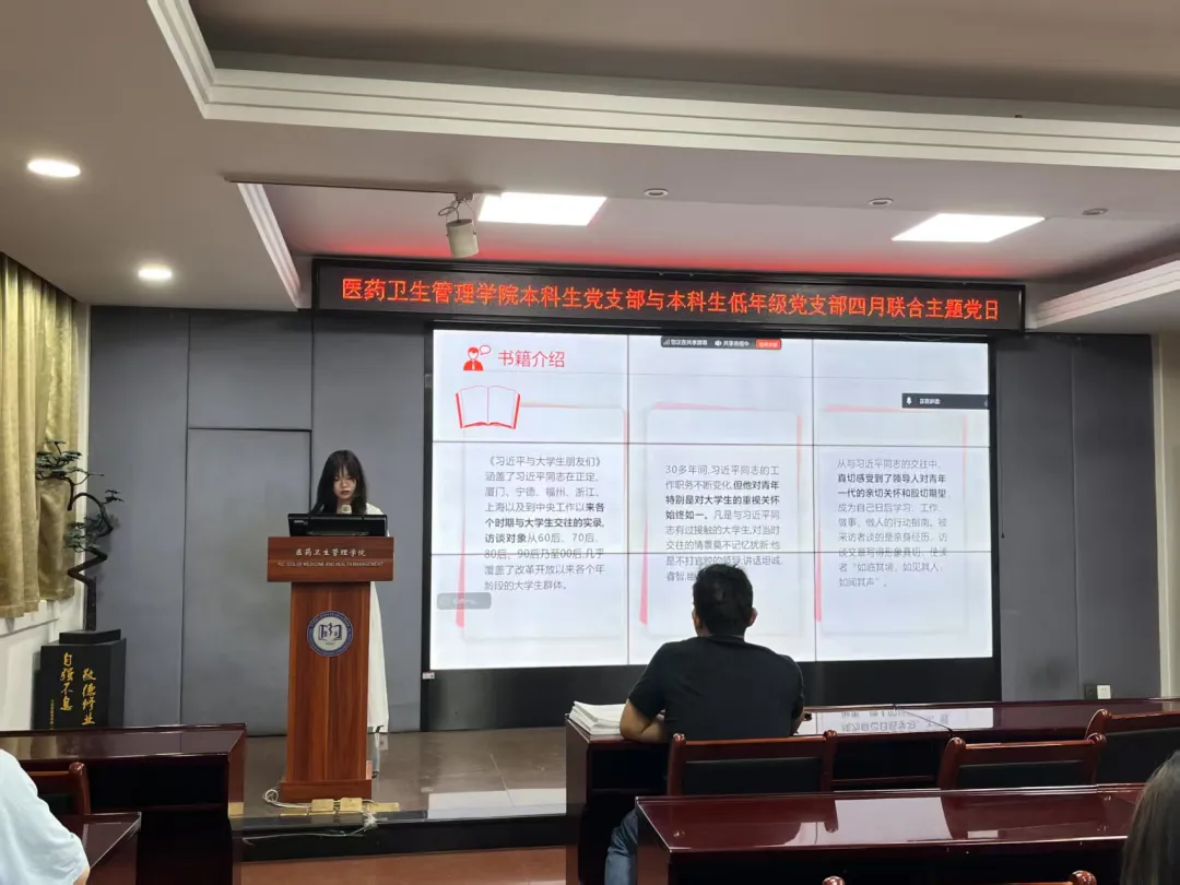 2025年4月25日晚,医管院本科生党支部与本科生低年级党支部在医管院703联合开展了四月份主题党日活动暨“习语集体学”专题学习活动。党建辅导员杨俭、支部党员与积极分子参与本次主题党日。本次主题党日深入学习了习近平总书记在中共政治局就建设更高水平的平安中国第十九次集体学习上的讲话,以及对于《习近平与大学生朋友们》书籍阅读的感悟分享。