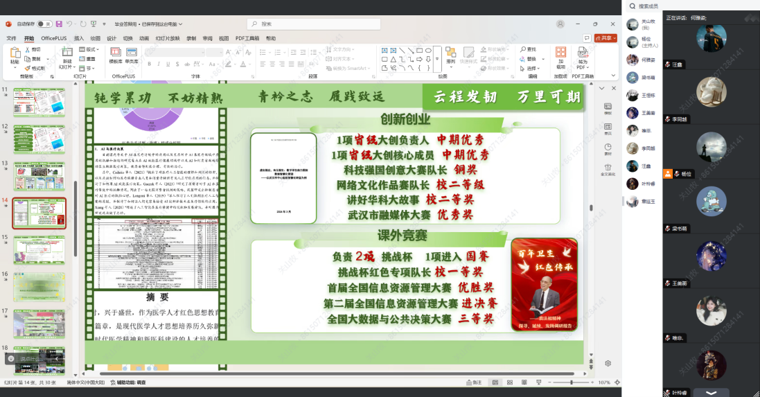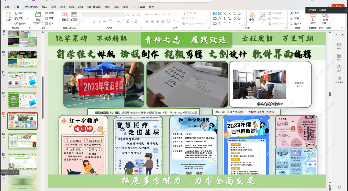 在班级建设方面,何雅姿同学深入剖析了自己在学生工作中的实践经验和深刻感悟,就如何增强班级凝聚力、打造特色班级文化、组织高效班级活动以及促进班级成员之间的沟通协作等关键问题,给出了极具建设性的建议,为班级建设工作注入了新的活力和思路。