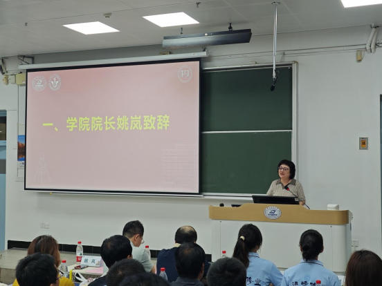 会议伊始,姚岚院长代表学院致辞,她首先对家长及新生的到来表示热烈欢迎,并就学院的发展历程、专业特色与育人理念做了详细阐述,全方位、多维度展现了学院在人才培养、学科建设、科研创新等方面取得的丰硕成果,她结合对专业发展的思考,为新生在未来的专业学习提出了建议,使学生与家长对大学阶段的成长路径有了更清晰的认知。