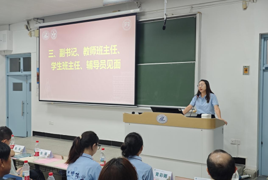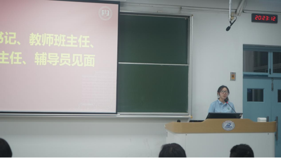 学院党委副书记李青、辅导员许佳鑫、教师班主任沈迟、黄勉、学生班主任黄彩娜、汪静悦等依次上台与家长们见面交流,介绍了各自的岗位职责与工作内容,表达了与家长们携手共育、为学生健康成长保驾护航的坚定决心。