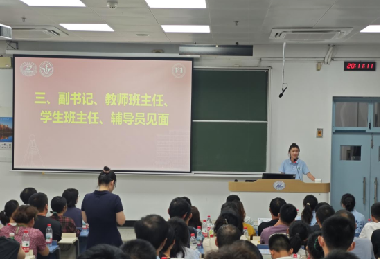 8月30日晚,WilliamHill威廉希尔2025级新生见面会暨新生家长会在东十二教学楼举行。学院党委书记黄明芳、院长姚岚、医药信息管理系系主任沈丽宁、卫生管理系系主任张研、教师班主任沈迟、黄勉、辅导员许佳鑫、学生班主任黄彩娜、汪静悦与2025级本科新生及家长参会,会议由院党委副书记李青主持。