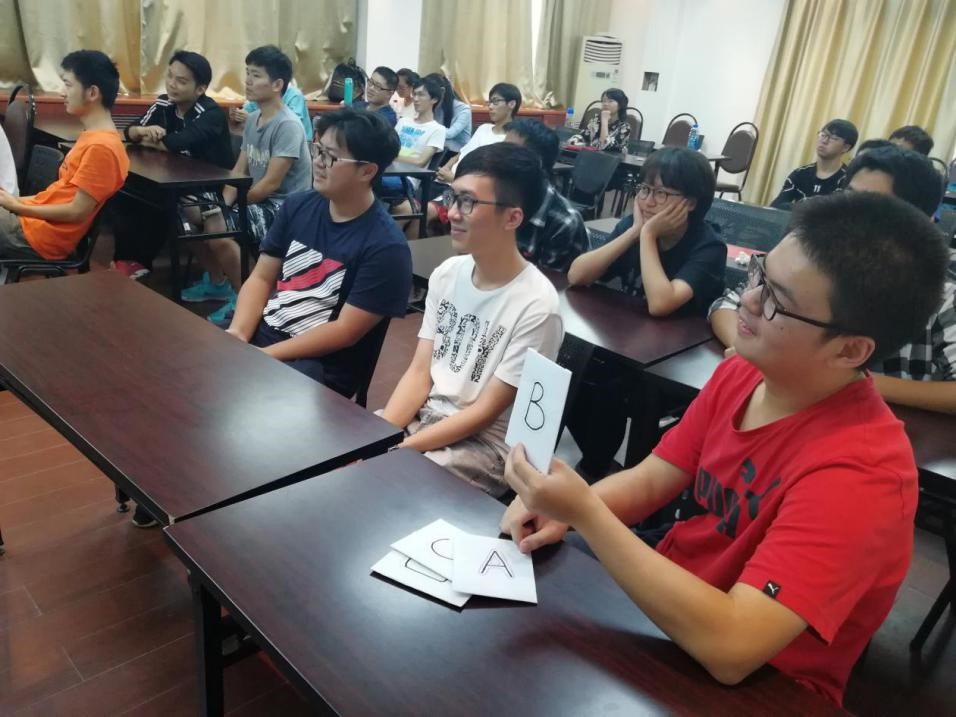 班委仪式过后,高红霞老师通过PPT向我们介绍了她的大学生活,并对我们的学习生活提出了独到的建议。在这个环节中,我们了解到,虽然大学生活看似轻松,但实际上充满着考验。高老师提出大学生活有“四有”——有取舍,有坚持,有焦点,有成长。即:在令人眼花缭乱的学生工作和社团活动中有所取舍;对想要完成的事情日复一日地坚持下来必能有不小的收获;将关注点放在最适合自己发展的项目上;通过四年的努力成长为更好的自己。同时,高老师还为我们搜集了大学四年里各种校级活动和全国性竞赛的时间,让我们对未来的大学生活不再迷茫,也有了更为清晰的规划。