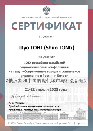 4月21日,由俄罗斯圣彼得堡国立大学和圣彼得堡国立电影电视大学主办的第十九届俄中社会学会议:俄罗斯和中国现代城市与社会治理,在圣彼得堡成功举行,本次会议采取线上和线下结合的方式进行。国内清华大学、上海交通大学、南京大学、中国人民大学和我校等相关领域的学者参与了本次会议。