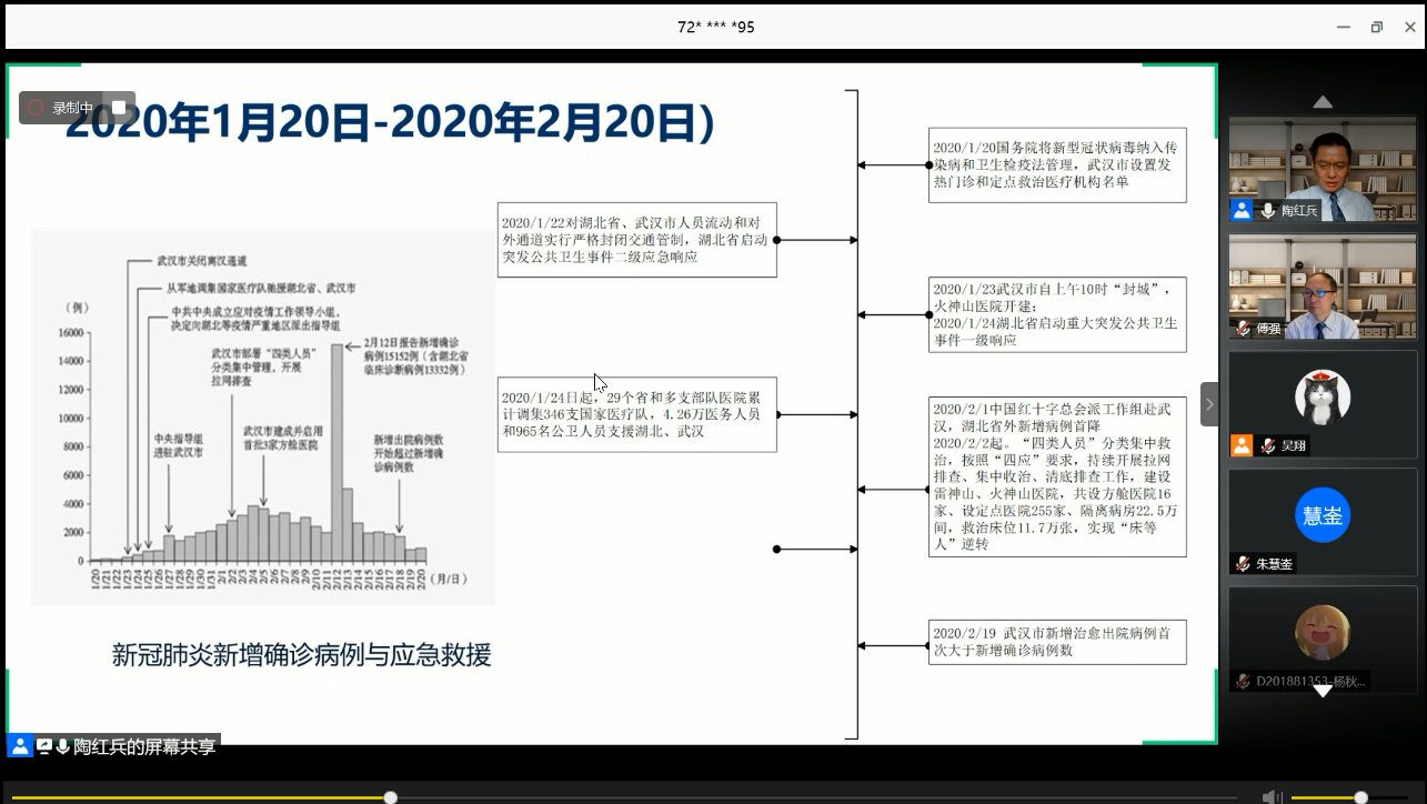 研讨会当日下午,来自我校公共卫生学院魏晟教授、WilliamHill威廉希尔陈迎春教授、附属协和医院孙晖副书记、同济医院门诊办公室李刚主任、附属肿瘤医院(湖北省肿瘤医院)刘玉林副院长、我校社会学院副院长刘成斌教授等六位专家从武汉新冠肺炎的流行病特征、基层防控能力、方舱医院管理、防控常态下的门诊管理、防控常态下肿瘤患者的诊疗以及生活方式与传染病的防控等角度分享了此次武汉在抗疫过程中经验和策略思路,向参会的国内外嘉宾分享了“华中大经验”。