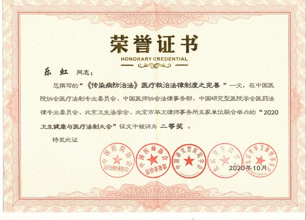 2020年10月24日下午,由中国医院协会医疗法制专业委员会、中国医师协会法律事务部等五家单位共同发起的首届“卫生健康与医疗法制大会”在北京召开。此次大会以“新法律 新医疗 新健康”为主题,旨在积极促进我国医药卫生法律领域的不断发展,进一步加强医疗卫生改革、推进医疗卫生单位的法治化建设,推动卫生健康事业高质量发展。williamhill中文WilliamHill威廉希尔乐虹教授撰写的论文获得二等奖并受邀进行会议发言。