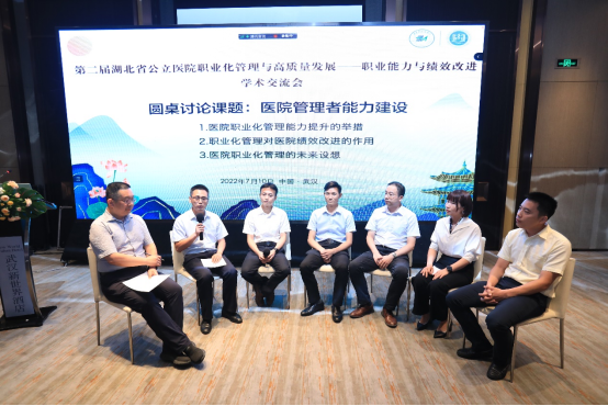 大会第二项议程,以“医院管理者能力建设”为主题,围绕医院职业化管理能力提升的举措、职业化管理对医院绩效改进的作用、医院职业化管理的未来设想三个方面,开展圆桌讨论,由武汉大学人民医院人事处余红松处长主持。大会邀请了湖北省中山医院副院长方亮、williamhill中文同济医学院附属同济医院人事处副科长李松键、williamhill中文同济医学院附属协和医院肿瘤中心医护办副主任向伟、武汉大学人民医院人事处与法规办党支部书记王敏、武汉大学中南医院人事处杨俊杰、太和医院人事处副主任宋亚峰,为提高医院管理者能力建设,助力医院高质量发展积极建言献策。