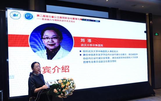 湖北省医院协会人力资源管理专委会主任委员陶红兵教授主持本次学术交流会,中国医院协会人力资源管理专委会副主任委员兼秘书长梁金凤为此次大会致辞,梁秘书长表示,希望中国医院协会人力资源管理专委会今后能够与湖北省人力资源管理专委会的同仁一道,围绕全国医院人力资源管理的制度建设,特别是人事薪酬制度改革的热点难点问题,加强合作,为推动医院职业化管理水平的提高,促进医疗卫生服务高质量发展,发挥好平台优势和智囊作用。