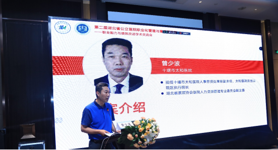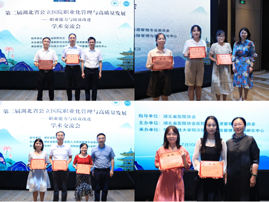 大会的第三项议程,由太和医院武当山院区曾少波院长主持优秀论文颁奖环节,大会从来自全国各地投稿的40余篇论文中,评选出10篇优秀论文,并由湖北省医院协会人力资源管理专委会主任委员陶红兵,副主委孙旭芳处长、南京辉副科长和刘洁处长,为此次大会评选出的优秀论文的获奖者颁发荣誉证书。