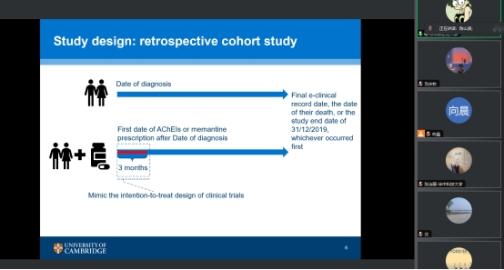 讲座过程中,陈山泉助理教授从自己这项回顾性队列研究的疾病背景、英国NHS卫生体系介绍及NHS系统中电子病历的优势和局限性、PICO法则及研究设计、数据处理中的混杂因素和偏差控制方法几个方面进行了详细介绍。
