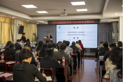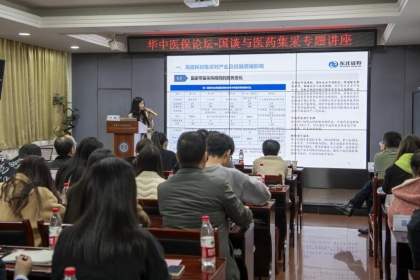 1月13日,我院顺利举办华中医保论坛——“国谈与医药集采”专题讲座,特邀国家医保局原党组成员、副局长陈金甫,湖北省医疗保障局一级巡视员、湖北省医疗保险研究会会长高忻和东北证券医药行业分析师叶菁作为主讲嘉宾,我院院长姚岚教授、项莉教授主持,我院师生及部分医疗机构代表和医药企业代表共同参与此讲座。