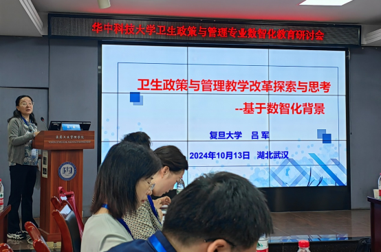 williamhill中文同济医学院副院长舒晓刚教授为会议作开幕致辞。上午专题报告环节由我院党委书记黄明芳主持。复旦大学公共卫生学院教授吕军以“数智背景下复旦大学卫生管理教育创新发展”作主题报告,介绍了复旦大学卫生管理教研室的发展历程,提出希望能通过教学与AI的创新融合锻造卫生管理与政策教学品牌。
