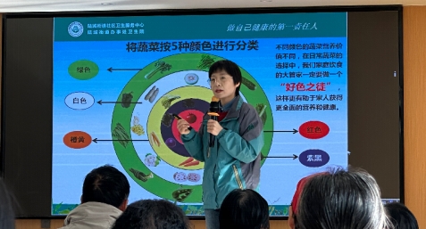 会上,参会人员现场观摩宜都市陆城街道名都社区慢性病患者主动健康群组化干预线下群组活动。社区卫生服务中心张丽鹏医生为居民们详细介绍体重管理与饮食搭配知识,讲授BMI和腰围来判断自身的体重状况、居民饮食搭配口诀。健康宣教结束后社区家庭医生带领大家一起做手指操,居民们纷纷参与互动,现场气氛热烈融洽。