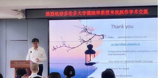 魏晓林教授以“国际卫生政策比较研究的方法和案例”为主题阐述卫生体系与政策比较研究的意义,介绍卫生政策分析的经典理论框架,并结合多个国家卫生政策推行的案例,生动阐明卫生改革政策实施的必要条件,强调政策改革的窗口需要合适的时机以及合适的政策方案。他结合自己与团队的研究成果,采用案例的形式对医疗与医保体系的设计和政策实施进行国际比较分析,全程引经据典,精彩纷呈。互动提问环节,魏教授与与会师生亲切交流,耐心解答我院师生在学习和科研中遇到的困惑和问题,并给出十分有价值的建议,包括在卫生体系质量评价中如何选取指标、具体卫生政策比较研究的实施和注意事项和卫生政策比较源的选取标准等。