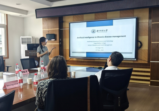 我院博士研究生朱行策介绍了我院在人工智能应用于慢性病管理领域的最新研究进展,进一步激发了双方深入探讨未来合作可能性的浓厚兴趣。