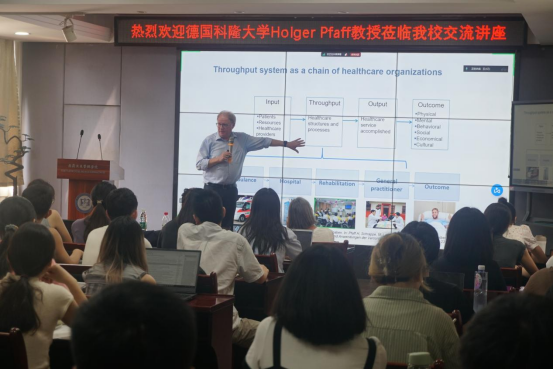 9月4日上午,Holger Pfaff教授围绕多元化医疗组织中的协作展开讲座,深入分析了技术与社会基础设施在医疗行动和绩效中的双重作用,并通过AGIL模式阐述了社会基础设施的构建与功能,随后与师生探讨了这一概念在中国的应用;9月6日下午,Holger Pfaff教授探讨了医疗机构应对内部和外部变化的新常态,强调卫生保健专业人员在应对需求中的关键作用,并与师生交流了这一理论对中国的启示;9月10日上午,Holger Pfaff教授聚焦远程工作效率及其对组织创新与生产力的影响,提出促进社会资本的策略,并讨论了这些策略在中国医疗机构中的应用;9月12日下午,Holger Pfaff教授讲解了最佳证据的科学原则,分析了结构创新中的挑战与解决方案,并与师生探讨了基于证据的医疗政策领域现状及未来发展方向。
