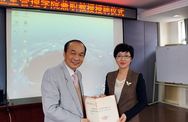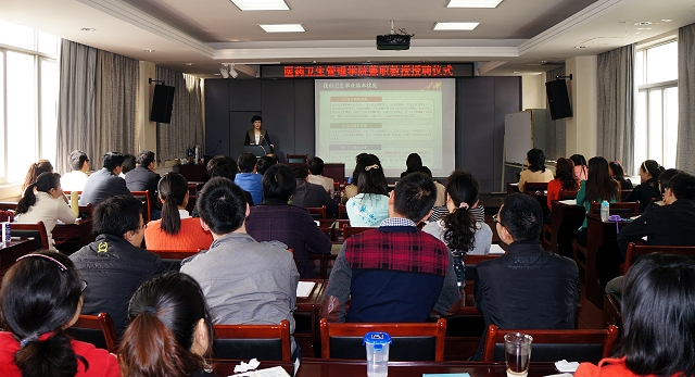 2013年4月2日,国家卫生与计划生育委员会信息统计中心徐玲处长、武汉市卫生局李滔局长受聘我校兼职教授仪式在我院举行。医管院院长张亮教授向徐玲、李滔教授颁发了聘书。学院领导、教师代表及研究生代表参加了受聘仪式。