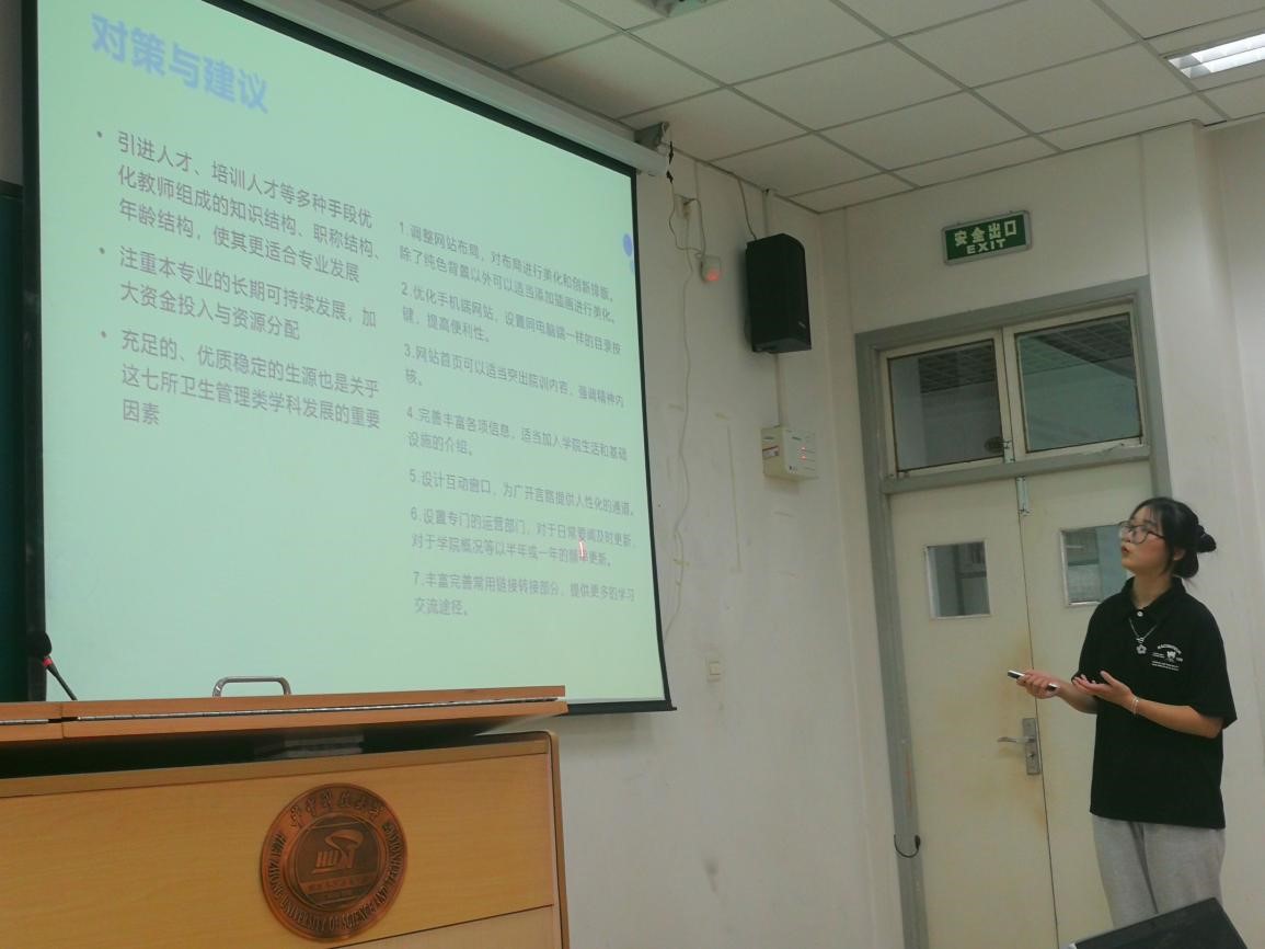 在了解卫生管理专业发展现状的基础上,同学们进一步思考了本次研究结果所呈现出来的问题,如有利于专业发展的共同因素、未来发展状况等展开讨论,得出了一系列促进我校卫生管理专业向纵深发展的对策与建议。此外,同学们从公共关系信息发布视角,从美观度、便利性、信息完整度、更新时效以及互动性等十多个指标对各个学院的网站进行了评析,并结合其他院系网站的情况,对我院网站建设提出几点建议。