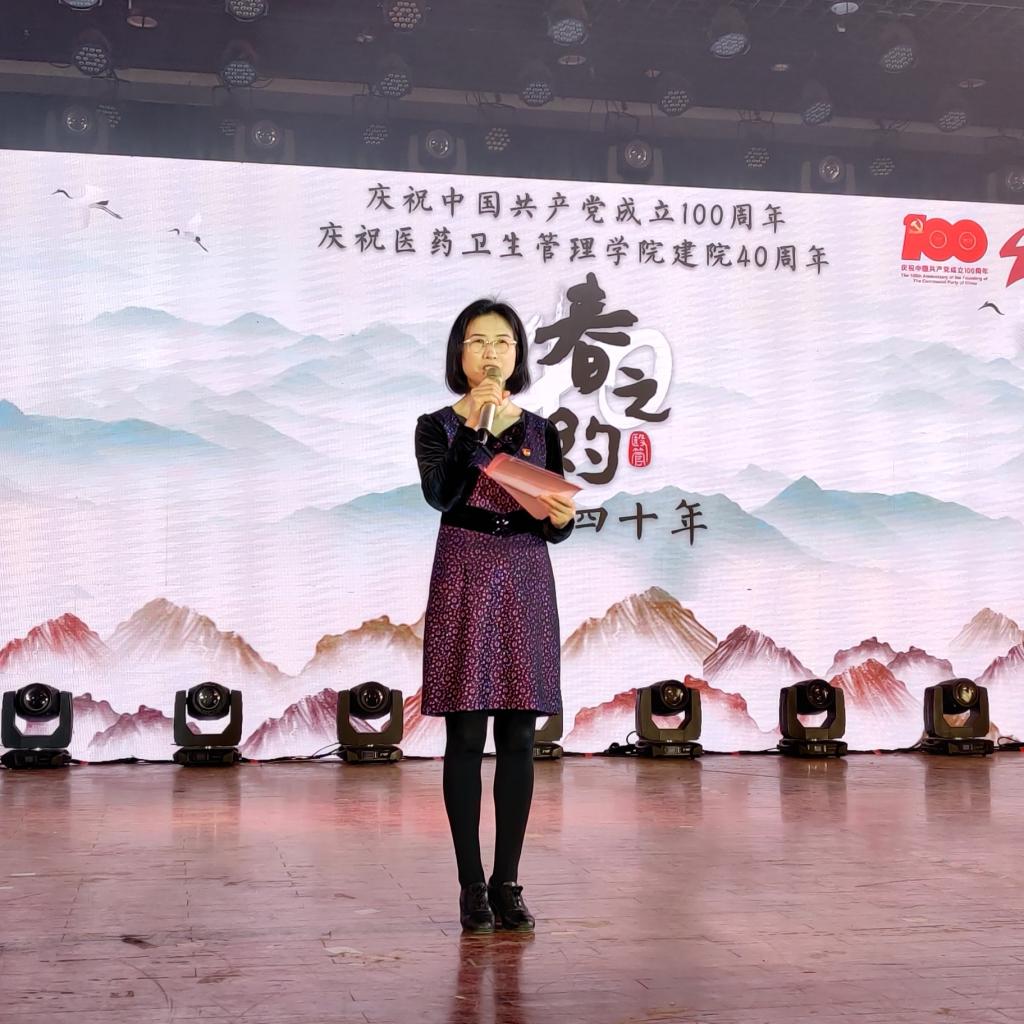 晚会伊始,学院党委书记黄明芳代表学院致开幕辞。黄明芳提到中国共产党百年征程波澜壮阔,百年初心历久弥坚,带领中华民族实现了从站起来、富起来到强起来的历史性飞跃。落实思树,饮水思源,医管学院四十载,从无到有,从小到大,从大到强发展起来,衷心感谢关心和帮助学院发展的各级领导与各界朋友,感谢四十年来为学院发展付出辛勤工作的全体师生。