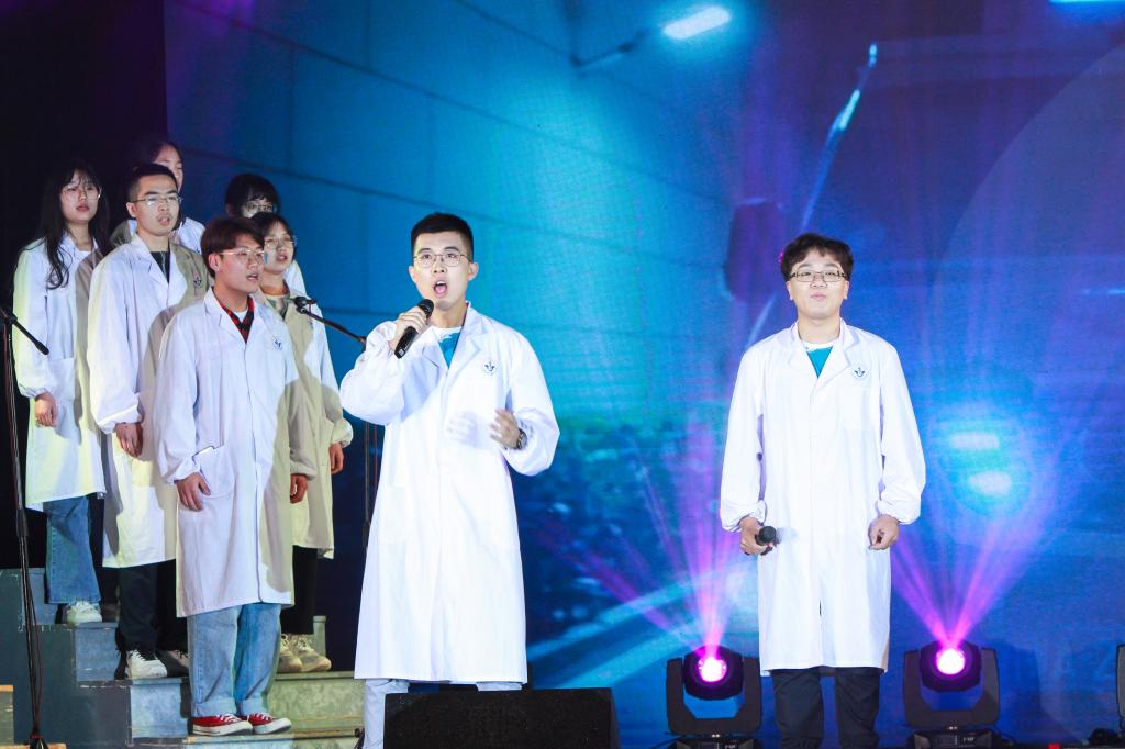 万物苏萌山水醒,大地阳和暖气生。舞蹈《Humble》通过形式多样的舞蹈展现了新时代青年大学生的朝气与活力,合唱《星辰大海》通过激昂奋进的旋律表达了医管院扬帆起航,以星辰大海为征途的“十四五”新蓝图。晚会最后,2017级本科毕业班大节目《纪念碑谷·医管院篇》用游戏的形式再现大学四年医管时光,用VCR的形式回顾大学的遗憾与满足,极具内涵与创意,饱含深情与不舍。佳期如许,后会有期,晚会在《干杯》的歌声中走向高潮,落下帷幕。