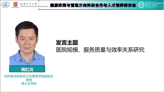 陶红兵教授以“医院规模、服务质量与效率关系研究”为题,介绍医院管理与发展研究中心的研究成员及取得的成果,并以医院质量与效率这一医院管理的核心主题为例,介绍中心取得的前沿进展。
