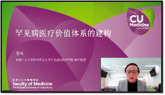 香港中文大学公共卫生及基层医疗学院董咚教授以“罕见病医疗价值体系的建构”为题介绍基于混合研究方法、以社群参与式为重点的罕见病病人视角的真实世界系列研究。