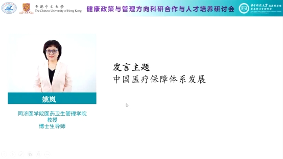 姚岚教授以“中国医疗保障体系发展”为题,介绍我国医疗保障体系近年来发展取得的成就、基于世卫组织UHC框架所面临的的问题以及未来的努力方向。