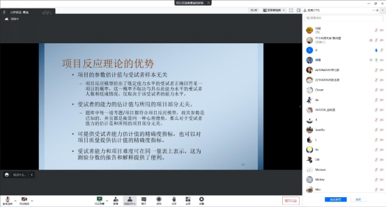 在《项目反应理论方法及应用》讲座中,傅强教授从项目反应理论的概述与历史、如何运用项目反应理论、项目反应理论在Stata中的命令、结果及解释三个方面做分享。在《卫生技术评估中的健康相关生命质量研究综述》讲座中,罗南教授围绕生命质量的定义、生命质量量表的开发、生命质量的估值方法、生命质量数据的收集和使用等内容进行详细讲解。