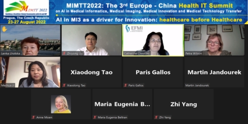2022年8月23日至27日,以“用人工智能和MI3建立一个更健康的全球社区”为主题,聚焦AI赋能医学信息学(Medical Informatics)、医学影像(Medical Imaging)与医学创新与技术转化(Medical Innovation &Medical Technology Transfer)的第三届中欧健康技术峰会(3rd Europe-China Health IT Summit)在线上顺利召开。本次峰会由中国医药信息学会(China Medical Informatics Association, CMIA)和欧洲医学信息学会(European Federation for Medical Informatics, EFMI)发起,欧洲医学信息学会主办,布拉格技术大学承办,国内首都医科大学与中国医学科学院协办,与会人员包括来自中国和欧洲地区的百位学者和专家。