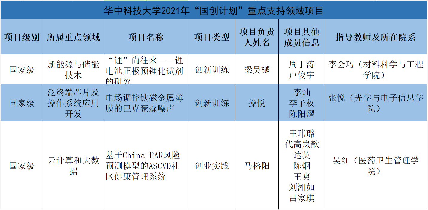 近日,教育部发布《教育部高等教育司关于公布国家级大学生创新创业训练计划项目和重点支持领域项目名单的通知》,我校3个项目入选国家级大学生创新创业训练计划重点支持领域项目。其中,我院吴红老师指导的本科生项目团队《基于China-PAR风险预测模型的ASCVD社区健康管理系统》为3个重点支持领域项目之一。该项目由我院信息管理与信息系统(医学信息)1801班马榕阳负责,组员包括代高岚歆、王爽、刘湘如、吕家琪、陈炯、达英、王玮璐等。