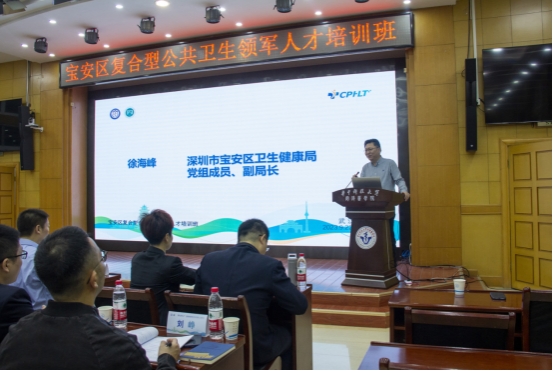 深圳市宝安区卫生健康局党组成员、副局长徐海峰在开班仪式上讲话,他首先对本次培训班的顺利举办表示祝贺,并阐述了本次培训班的目的和意义。强调学员要在培训过程中积极思考,在培训后将所学所得带回实际工作中,做到学有所思、思有所悟、悟有所行、行有所效。