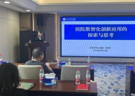 作为培训班学习委员的武汉市中心医院信息科科长左秀然以《医院数智化创新应用的探索与思考》为主题作报告,介绍了数智化运营管理中心全院物联数据的全采集,包括所有楼宇、设施设备和就医数据,通过数字孪生技术将实体医院从物理空间“搬”到了数字空间。