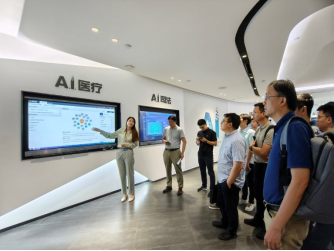 座谈会后,讯飞医疗高雨薇经理带领教师实践团参观展厅,介绍讯飞发展历程并讲解相关产品。