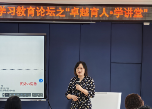 5月26日,第16期师德师风学习教育论坛之“卓越育人•学讲堂”在我院八楼实训室举行,我院“三育人奖”获得者王静教授作师德师风专题分享。学院党委书记黄明芳、院长姚岚、党委副书记刘仁钊、副院长马敬东以及全体教职工参加学习。