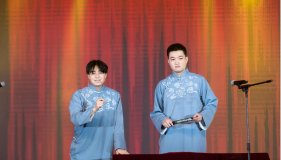 “一袭大褂立于台间,语惊四座谈笑四方”。信管2021级本科生带来相声⟪新众口难调⟫,两位相声学徒将古装仙侠、动物世界、温柔空姐、译制片等奇思妙想融会贯通,博得观众们的欢笑,为会场增添轻松愉悦的氛围。