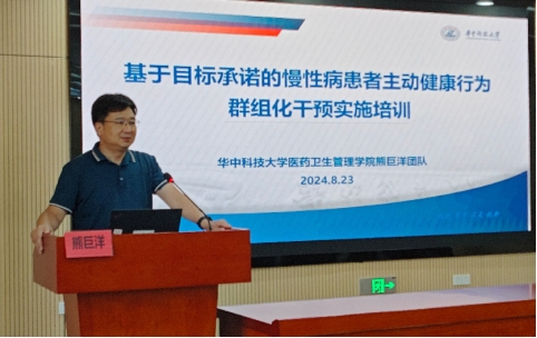 会上,我院熊巨洋副教授从项目背景、项目设计、实施计划、调研工具等方面对项目作全面介绍。他指出囿于被动健康的管理模式,大部分慢性病患者存在知行分离与健康惰性问题,实践中基层慢性病患者健康行为干预成效不显著。因此,开展患者主动健康行为的群组化干预,通过群组化管理模式与数字化手段相融合,可帮助患者树牢“自身是健康第一责任人”意识、提升患者自我健康管理效能、提高基层慢病管理效率,具有较强的现实意义和实践价值。