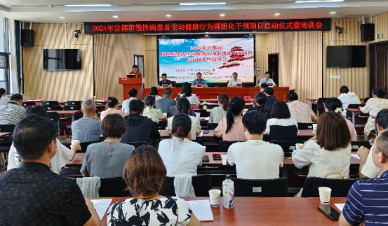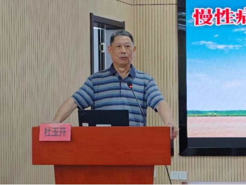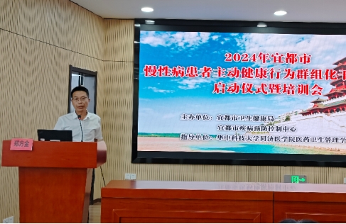 宜都市疾控中心书记郑方金就项目推进作动员讲话,他强调以健康为先导是国家发展战略,作为公共卫生人员未来应开展更宽更广的健康服务,努力提升广大慢性病患友的幸福感、获得感。