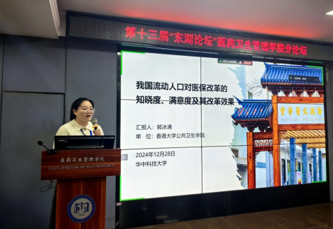 来自香港大学的郭冰清博士以《我国流动人口对医保改革的知晓度、满意度及其改革效果》为题作主旨报告,介绍了其在卫生政策过程研究和筹资风险保护方向的研究成果,并阐述了其未来的研究计划。