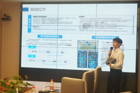 在随后的交流会上,九州通集团副总经理冯超、集团大学校长陈亮、政策研究室主任张玮、医管院2022届毕业生姜继宗等公司代表与医管院师生展开交流。冯超以“技术驱动下的范式革命与医卫新机遇”为主题,深入剖析医疗IT市场的现状、挑战与未来趋势,指出数智化浪潮正催生数字疗法设计师、元宇宙医院架构师等新兴职业,强调跨学科素养与创新能力对职业发展的重要性。张玮分享企业政策研究范式,解读近五年卫生政策热点;陈亮详细介绍集团“天鹅”人才工程、管培生计划等特色培养体系。医管院2018级本科生姜继宗作为优秀校友,分享了其在九州通的职业成长感悟。