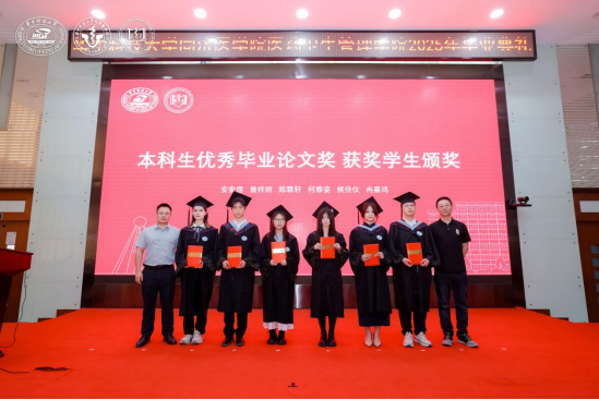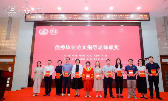 典礼第三项,宣读优秀毕业论文奖表彰决定。副院长王静教授宣读《关于表彰医管院2025届本科生优秀毕业论文奖的决定》《关于表彰医管院2025届优秀硕士、博士学位论文的决定》,并对安家煜等6名本科生优秀毕业论文奖获得者、顾时萍等10名优秀硕士、博士毕业论文奖获得者及指导教师表示祝贺。