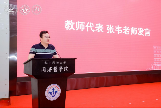 典礼第七项,教师代表张韦老师发言。张韦老师对同学们提出期许:胸怀“国之大者”,做人民健康的忠诚守护者;驾驭“数字浪潮”,做终身学习的智慧引领者;锤炼“治理智慧”,做复杂系统的优秀协调者;坚守“伦理底线”,做公共价值的坚定捍卫者。并祝愿同学们前程似锦,在守护人类健康的星辰大海中,绽放最耀眼的光芒。
