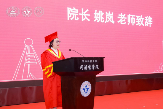 典礼第八项,院长姚岚教授致辞。姚岚院长首先代表学院全体师生,向2025届毕业生表示最热烈的祝贺,向辛勤培育的父母和老师致以最崇高的敬意。姚院长叮嘱同学们常怀家国情怀、永葆求知热情、坚守专业精神。并表示无论将来身在何方,母校永远是同学们奋斗前行的坚强后盾,衷心祝愿同学们毕业快乐,前程似锦!