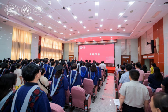 典礼第一项,全体起立,奏唱国歌。毕业典礼在庄严肃穆的国歌声中正式拉开序幕。