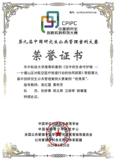 第九届中国研究生公共管理案例大赛共有268所院校3115支队伍参赛。我院有两支队伍获奖。由高红霞、黄明芳老师指导的团队以《空中的生命守护链——十堰山区对航空医疗救援行动的协同探索》刘亚清、熊巨洋老师指导的团队《从“危机”到“典范”:T 医院保洁服务外包的“净界保卫战”》获得优秀奖。这既是对我院公共管理研究生培养和实践能力的肯定,也对学院未来在学生培养中如何提升公共治理、问题分析和解决能力提出更高要求。